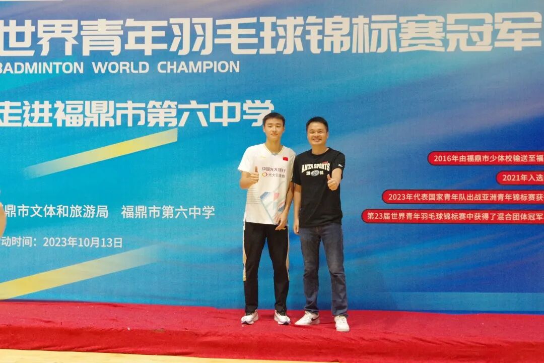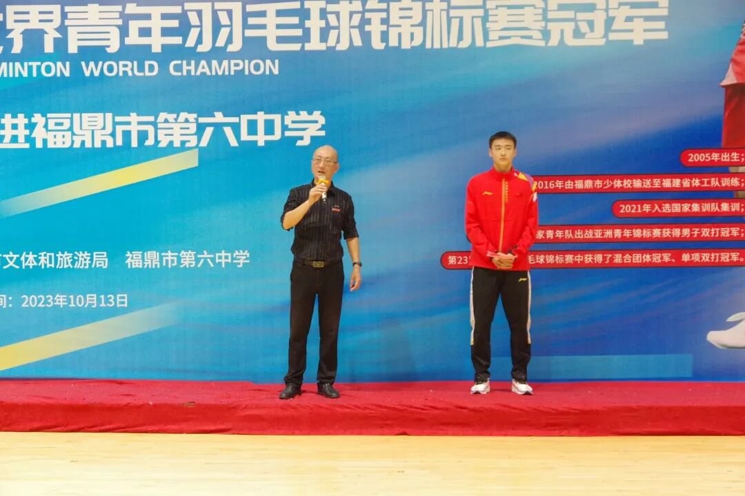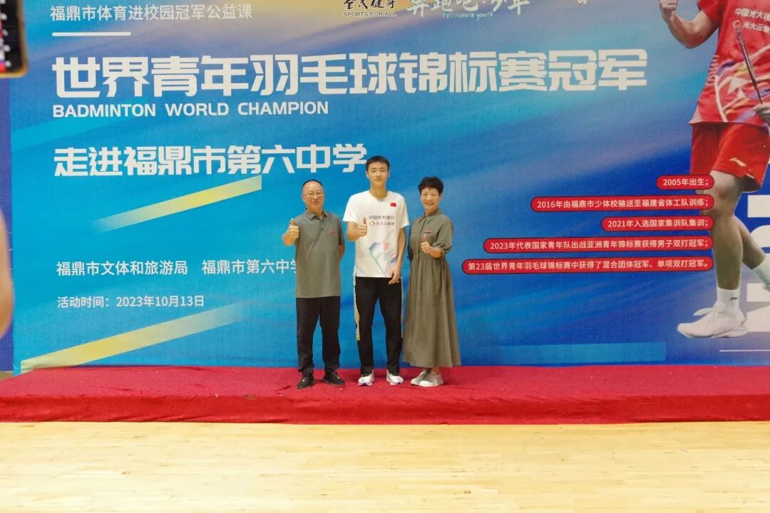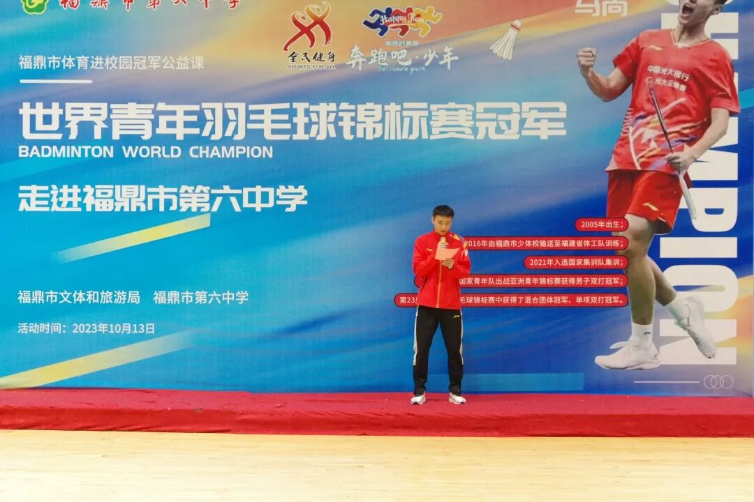 2023年10月13日上午,世界冠军马尚返回母校——福鼎市第六中学,与师生共同分享成长经历并带来一堂非常精彩的《冠军公益课》。