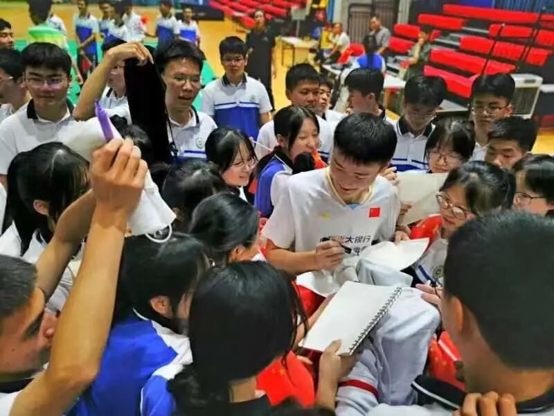 课后,同学们、家长们纷纷找冠军签名、合影,球馆瞬间成为“追星”现场,马尚校友对学弟学妹表达了他的祝福。“希望学弟学妹好好学习,加强锻炼” ,他希望同学们“要为梦想拼搏,要立志为国而战!”